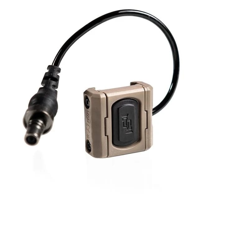The Dual Lead variant is the same Modbutton Lite but with both a Surefire®/Modlite and Crane Laser lead. This Modbutton Lite activates both leads simultaneously, allowing for an excellent vis override functionality of both white light and visible laser.